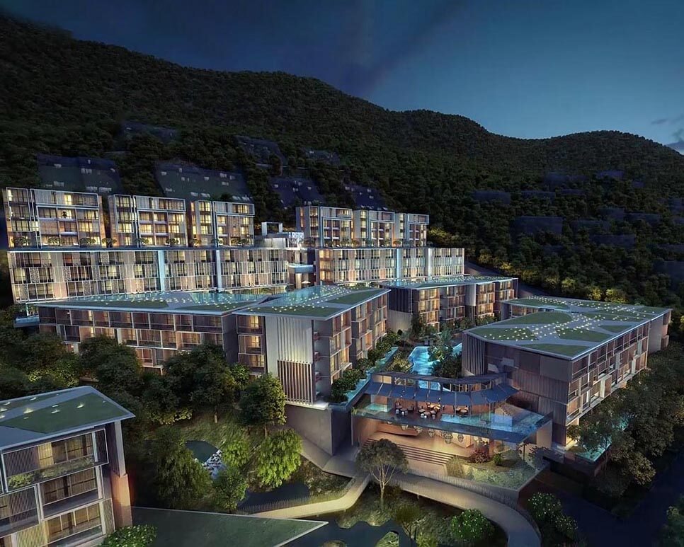 Platinum Bay offers a unique blend of luxury and tropical serenity, situated in the heart of Phuket’s sought-after sunset coast. Currently under construction, this resort condominium extends over a total building area of 19,160 m² and includes an additional 10,498 m² dedicated to facilities. Nestled in a lush tropical hillside surrounded by scenic mountains and views of the Kamala ocean, Platinum Bay is designed to provide an ideal environment for relaxation and leisure. The development features 14 buildings with a total of 432 condo units, enhancing exclusivity and privacy.