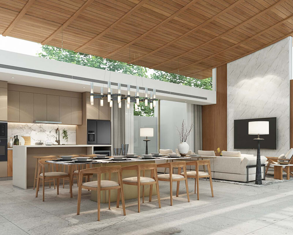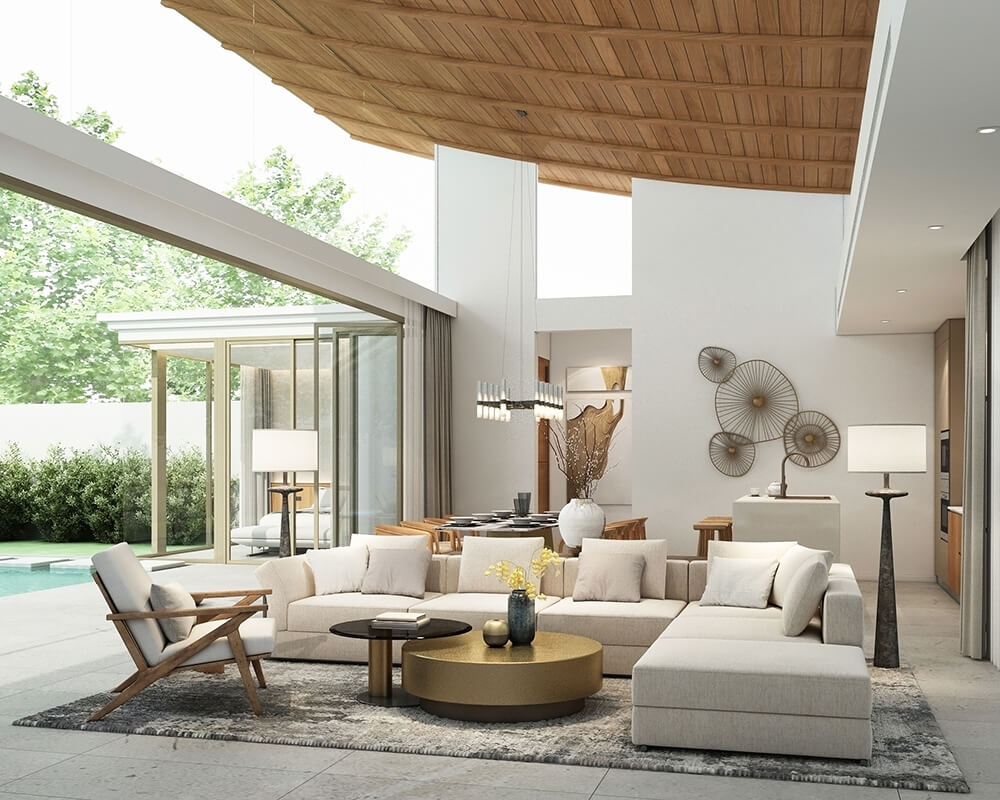 This development features twenty single-story pool villas that range in size from 405 to 643 square meters, with the construction size of each villa ranging between 306 to 458 square meters. Each villa is designed to offer comfort, originality, and an exclusive lifestyle, with the interior starting at 170 square meters.
